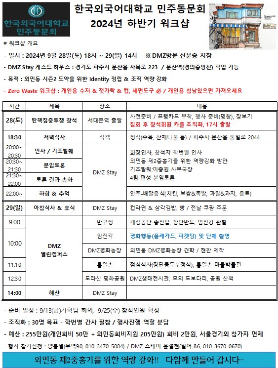 9/28(토)~29(일), 외민동 확대운영위원회 워크샵,