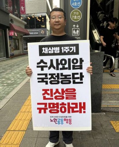 조화명(행정99) 동문, 채해병 사망 1주기 1인시위