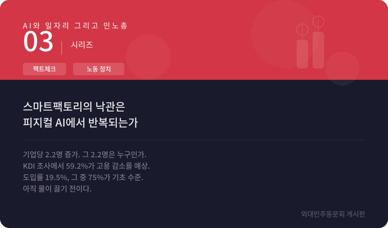 AI와 일자리 그리고 민노총 ③ 스마트팩토리의 낙관은 피지컬 AI에서 반복되는가 — 이재명의 고용 증가 논거 검증